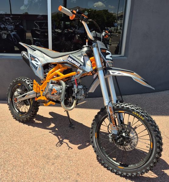 Denago’s MX2 is the ideal choice for teenagers and adults who are looking for a capable yet accessible dirt bike for riding in a variety of terrain. A 125cc overhead-cam engine transmits power through an improved 4-speed transmission and a more durable gold-anodized chain, providing a confidence-inspiring platform for everything from trail riding to the racetrack.