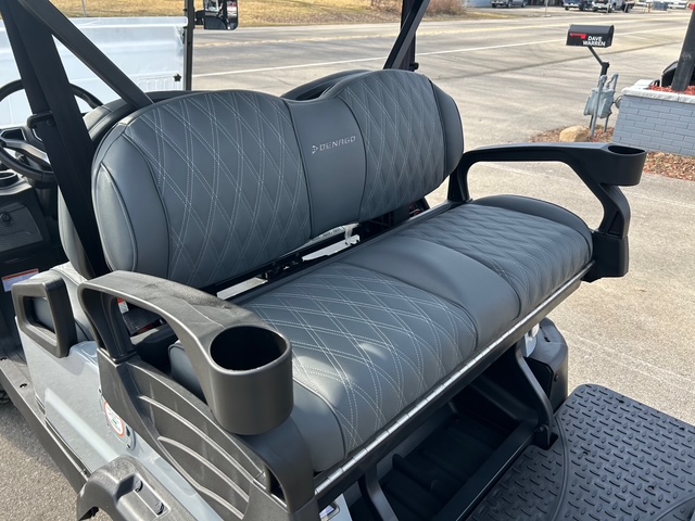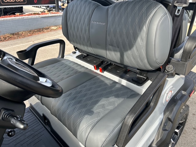 El interior de los coches de golf Denago ofrece una combinación de lujo y comodidad. El salpicadero está equipado con cuatro portavasos y un soporte específico para el teléfono móvil, lo que permite mantenerse hidratado y conectado mientras se conduce. Los lujosos asientos cuentan con reposabrazos para mayor comodidad, y el volante ajustable garantiza una experiencia de conducción personalizada. Las alfombrillas de alta calidad añaden durabilidad, mientras que los cinturones de seguridad de tres puntos garantizan la seguridad de los pasajeros.