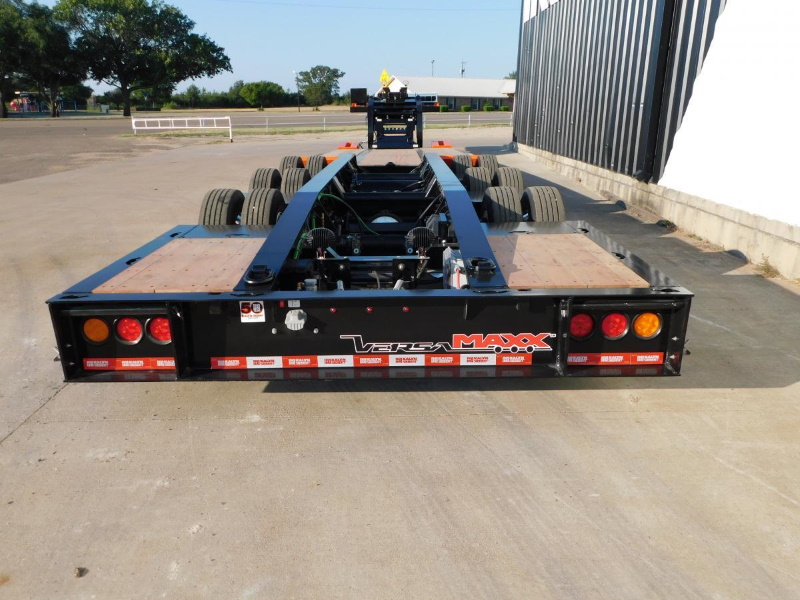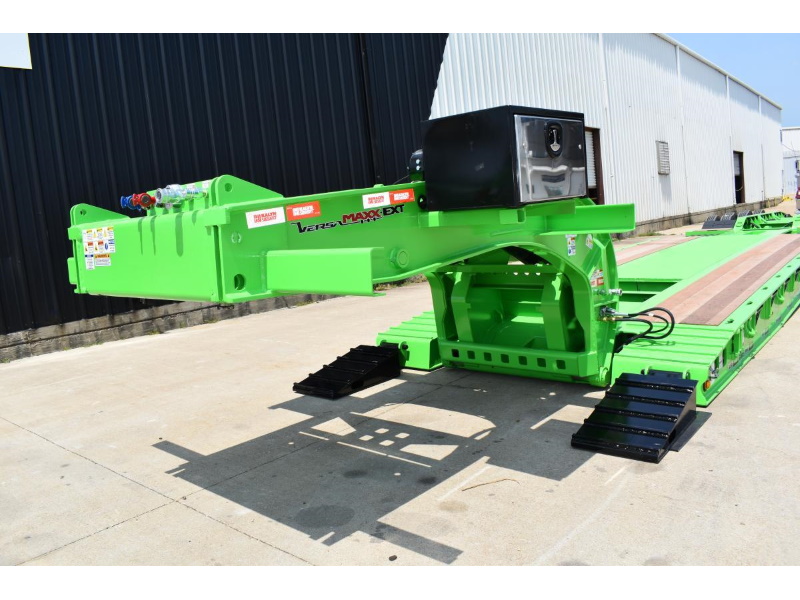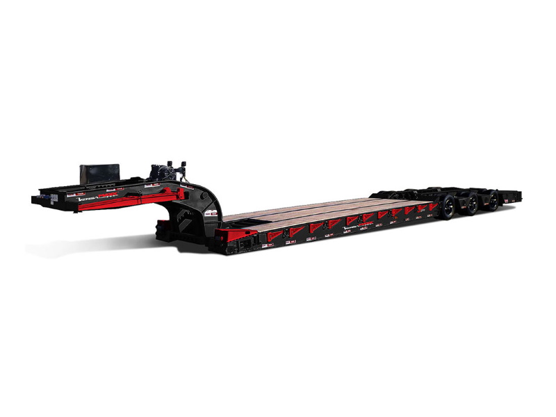 The VersaMAXX™ trailer features a 100,000 lb capacity and an adjustable hydraulic removable gooseneck (HRG), along with two 20,000 lb capacity winches with wireless remotes that make single-operator loading possible. This trailer is designed to meet the demands of low approach angles in loading and to provide a low deck height to accommodate taller vehicles.