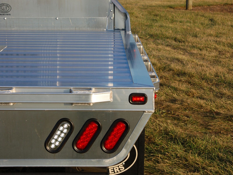 Pipe Re-Enforcements Between Stake Pockets | Stake Pockets & Rub Rail (sides and rear) | Mud Flap Brackets | Adjustable Headache Rack | Gooseneck Hitch Plate | Cast Aluminum Gooseneck Hitch Cover