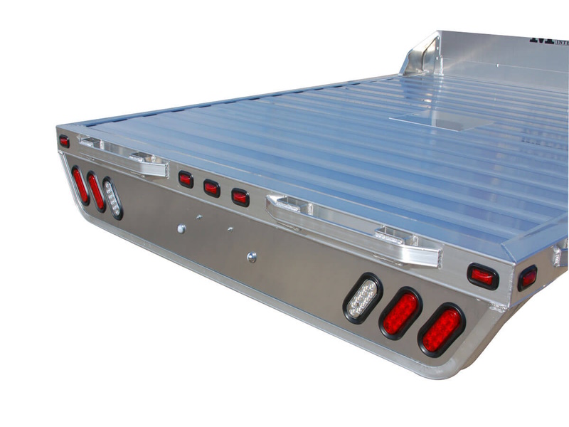 Moritz aluminum beds are tough and versatile. We provide standard features such as stake pockets and rub rail with pipe reinforcements in-between stake pockets, strong extruded decking for the floor, a recessed gooseneck hitch and adjustable frame rails.
