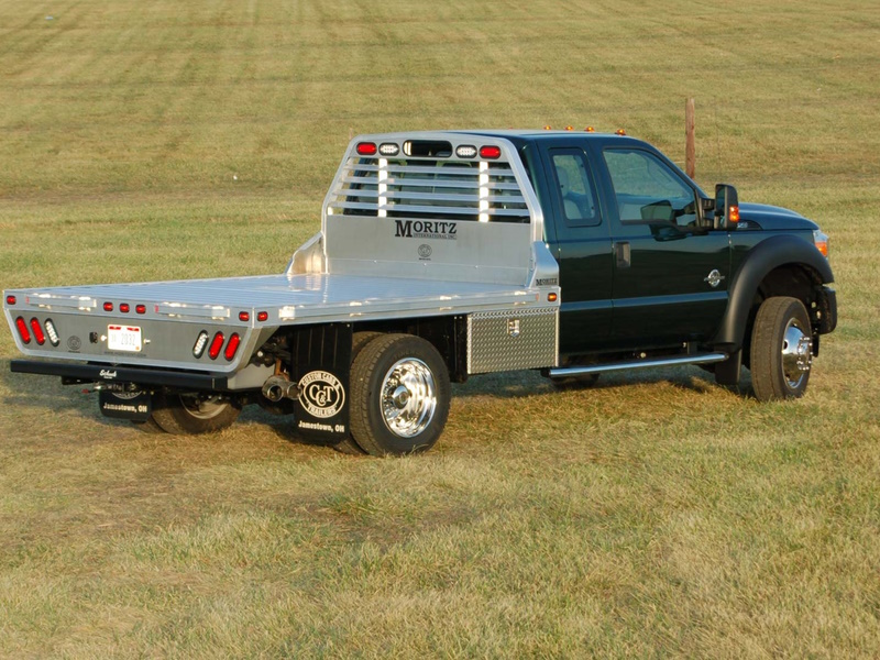 Moritz aluminum beds are tough and versatile. We provide standard features such as stake pockets and rub rail with pipe reinforcements in-between stake pockets, strong extruded decking for the floor, a recessed gooseneck hitch and adjustable frame rails.
