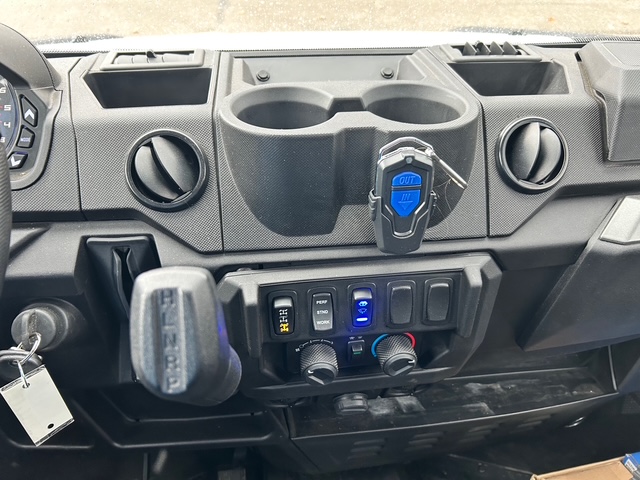 This 2021 Polaris Ranger XP 1000 Northstar Edition has always been stored inside, has many extras....including rear bumper and backrack, and only has 955 miles!! Seat covers have been on since the day it was purchased. Turn on the heat and stay warm in the enclosed cab while you plow or just go out for a ride on the trails. Also comes with an extra belt, two oil change kits, air filter, and the service manual. Call to arrange your test drive and take it home today!