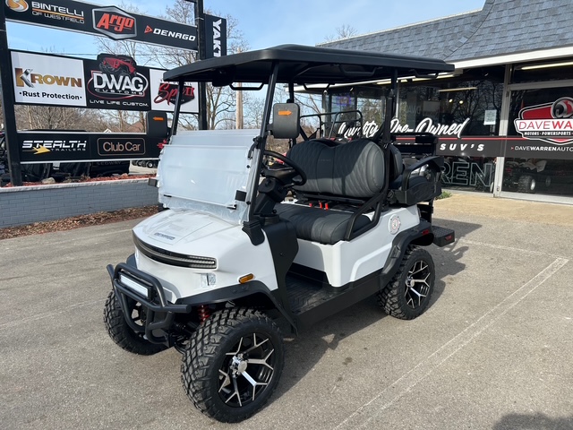 The design of these models showcases futuristic feel, with a front end reminiscent of the Tesla Cybertruck. Stylish wheels and an aggressive brush guard complement the look. Available in a variety of cool colors like Lava, Blue, White, Black, and more, you can easily find a cart that fits your vibe. Other notable exterior features include standard LED lights, side mirrors, a storage compartment, a windshield, and a canopy with grab handles.