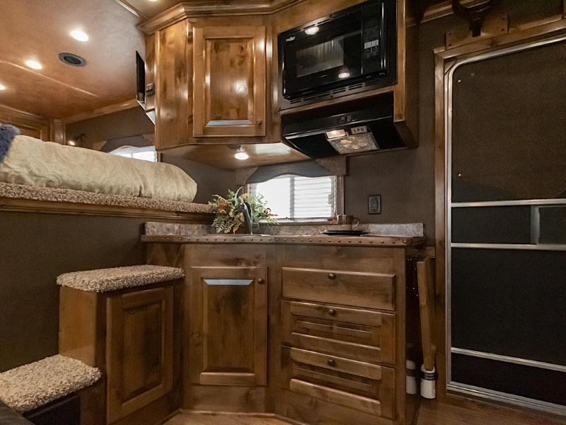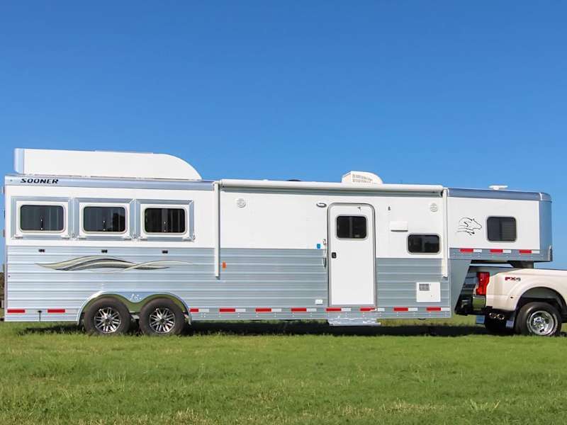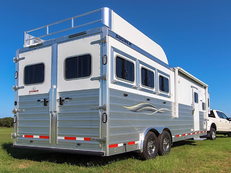 The Sooner Premier living quarters horse trailer combines an impressive set of options with the quality components that you expect from a Sooner. Featuring a package of features that includes industry leading bunk height, drop-down feed doors on streetside horse area windows, aluminum wheels and a versatile horse area, these models deliver! Each model also features a spacious interior that can be customized and designed to fit your individual needs perfectly. So when you’re looking for your new living quarters trailer, be sure to make the ‘Premier’ choice.